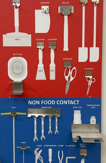 There are many benefits of using shadow boards in the workplace. These include; your working areas looking uniform and tidy, tools being put back correctly, and easy identification if a tool is missing. Finally using different colors across the board could stop cross-departmental use of tools.