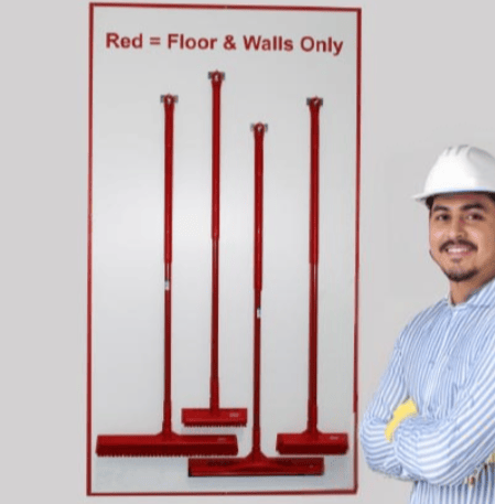 Available with or without cleaning tools. Basic tools required for shadow board cleaning stations like Squeegee, Push broom, Floor Safety Sign (Wet Stop Sign), Mop with Bucket, Counter Brush, Long Handled Dust Pan with broom, Small Dustpan, All Purpose Cleaner and many more.